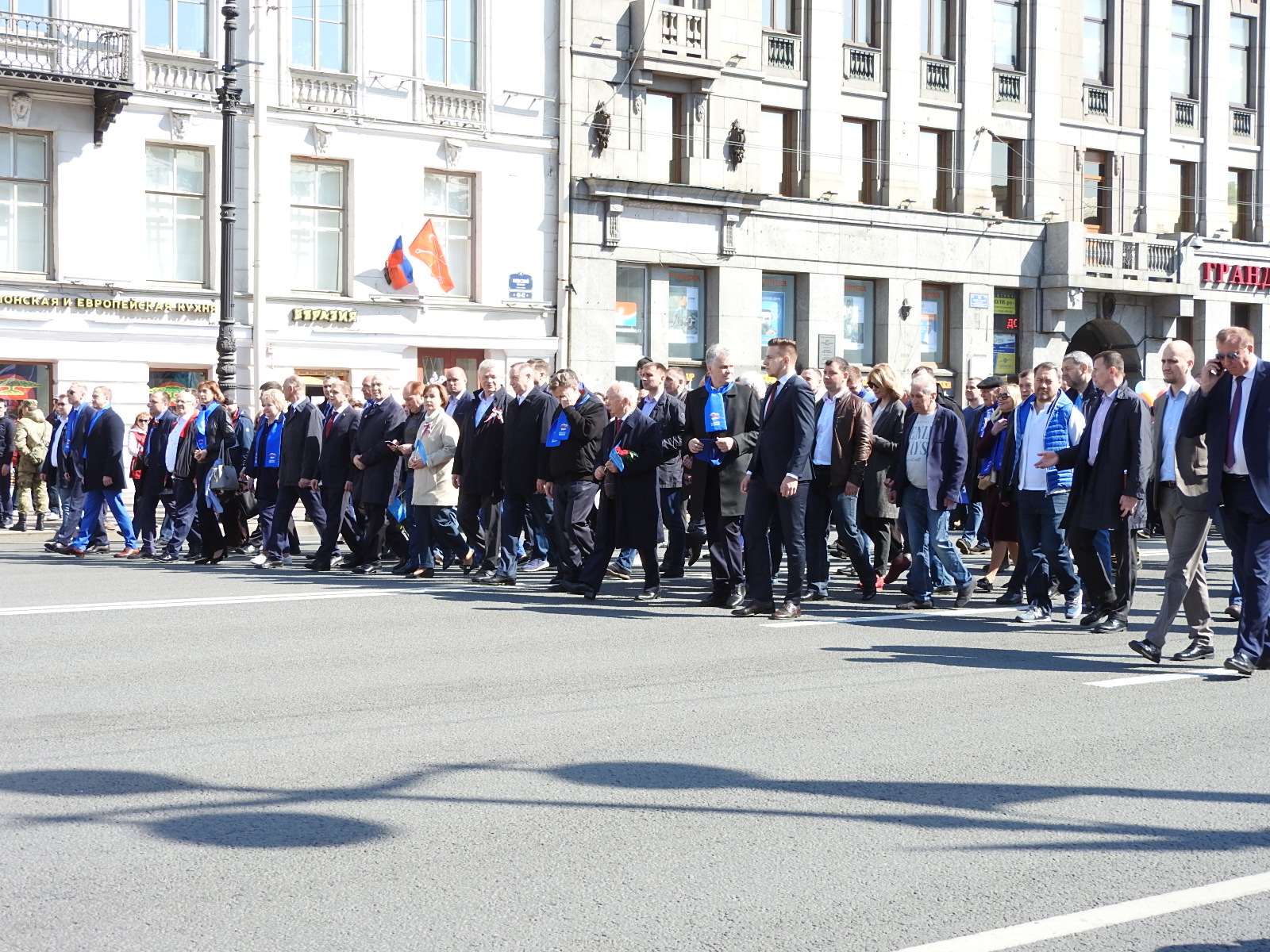 Очень много Единой России. Каждый район был представлен Единой Россией. Её изображали представители местных администраций и коммунальщики, которые норовили сбежать с демонстрации (и это в то время, когда других туда не пускали). Креативность некоторых районов дошла до высот абсурда. Колпино тащило надувную подводную лодку: