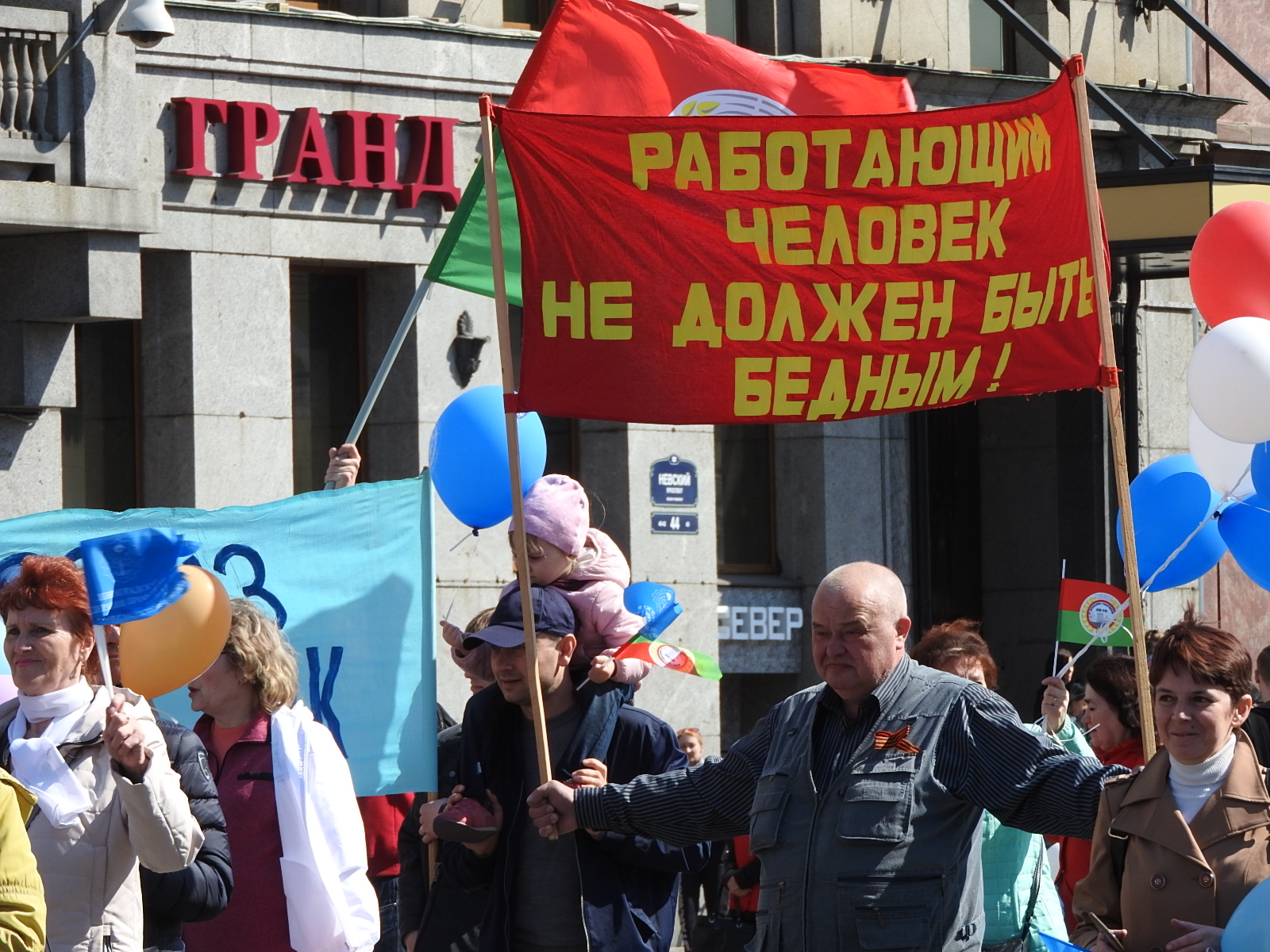 Праздник Первонаха - ч.1 Сходила я на первомайское, ээээ, не знаю, как назвать это странное и абсурдное мероприятие. Праздник, Потерявший Смысл. При СССР Первомай, в его официальной версии, это день, когда трудящиеся радуются, как им хорошо трудиться при социализме, и в то же время негодуют, что их товарищей угнетают в капиталистических странах, и тем самым омрачают радость труда. Народный же ритуал состоял в том, чтобы отмазаться от демонстрации (главное, ни в коем случае не брать транспарант, потому что его в конце надо сдавать, а значит, нельзя сбежать незаметно) и свалить на дачу, где созидательно копать грядки до 10 мая.