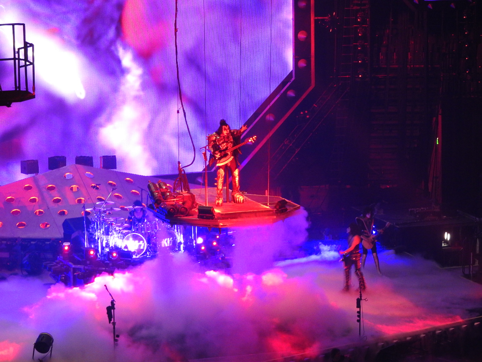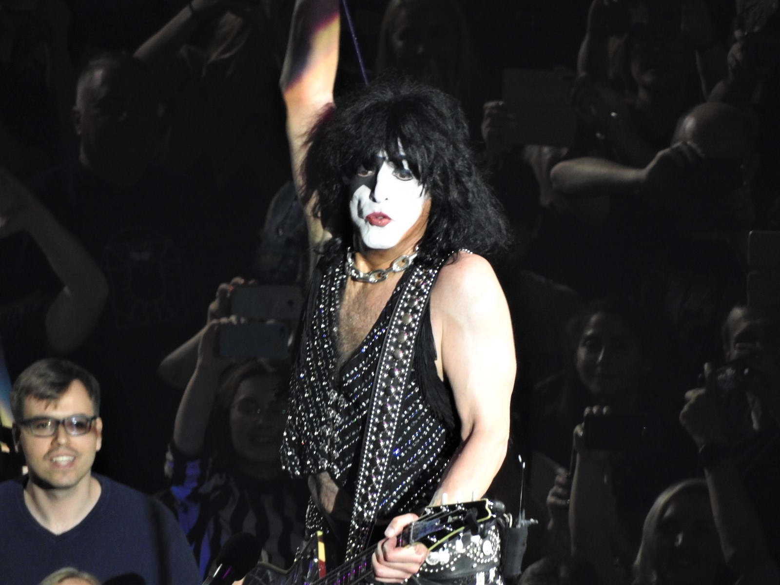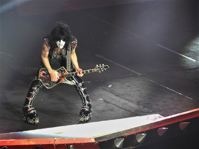 Пол Стенли много разговаривал с публикой смешным голосом мультфильмовского злодея. Посмотрела - ему 67 лет, а он летает над залом на трапеции и скачет на своих "лабутенах".