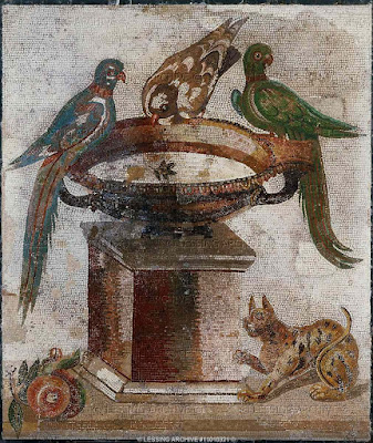 Дело в том, что в Европе попугаям еще Апулей советовал отрезать языки за сквернословие, а при римлянах они уже кричали "Аве Цезарь". Но это были индийские ожерелевые попугаи, которые и теперь скачут повсюду от Лондона до Нью-Йорка, а с ними еще квакеры. Конкретно это Александров ожереловый, потому что он приехал с Александром Македонским - зеленый, с красным носом и ободком на шее, часто красноватым или розовым.