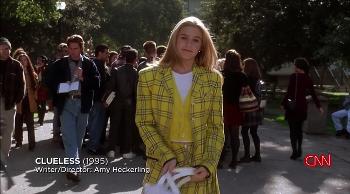 Остальные упоминаемые фильмы, скорей, отдельно стоящие утёсы. Желая проиллюстрировать, что разнообразие в кинематографе было всё же не спонтанным, а единым направленым движением, в нарративе есть три вставки: независимое кино и фестиваль Санденс, и я тут из нарезки признала только Кевина Смита с "Клерками" и фамилию Линклейтер, остальное всё мимо меня, черный неореализм - Синглтон и Спайк Ли. Ли еще смотрела, но афроамериканская драма, а уж тем более комедия, это очень специфичный для нас был жанр. Интересна связь этого течения 90-х с гангста-рэпом и рэперами, пришедшими в кино не только в качестве актеров, но со своим нарративом. И третья вставка - "женская режиссура". Не надо было выносить это в отдельный блок, потому что кроме Кэмпион и Бигелоу никого заметного или интересного в их списке не было, а Нору Эфрон и так две серии поминали через слово. Но зато этот бестолковый женский список подвел к одному из культовых фильмов 90-х - "Clueless" ("Бестолковая", "Без понятия"), снятому и написанному Эми Хекерлинг.