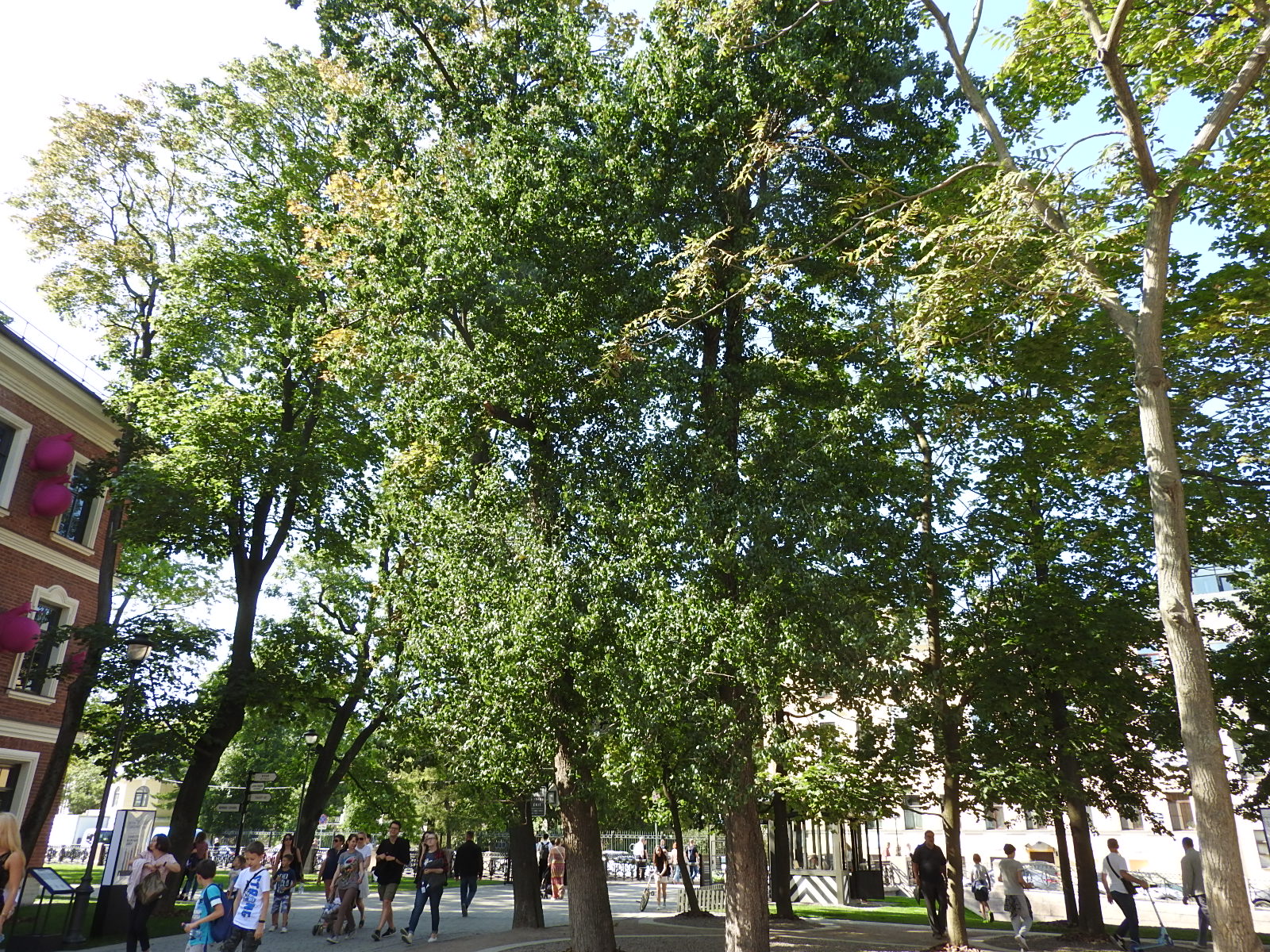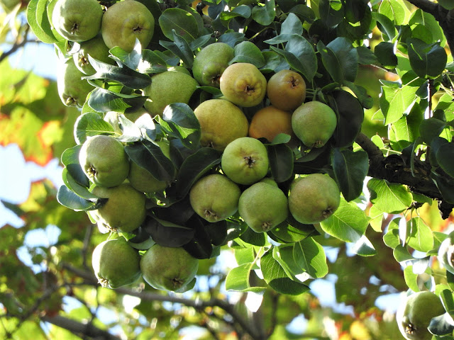 В Новой Голландии Оказывается, два дерева при входе - это груши. Никогда не видела, чтобы они цвели, но наверху с одной стороны все в мелких плодах.
