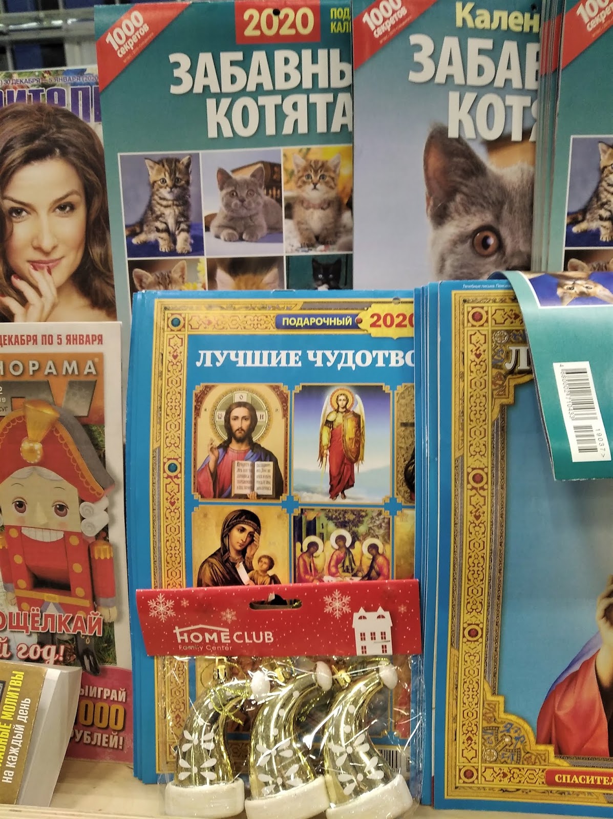 Праздничные календари теперь уровняли в правах чудотворцев и котят, а на обложке народного журнала "Панарама ТВ" тоже торчит Щелкунчик: