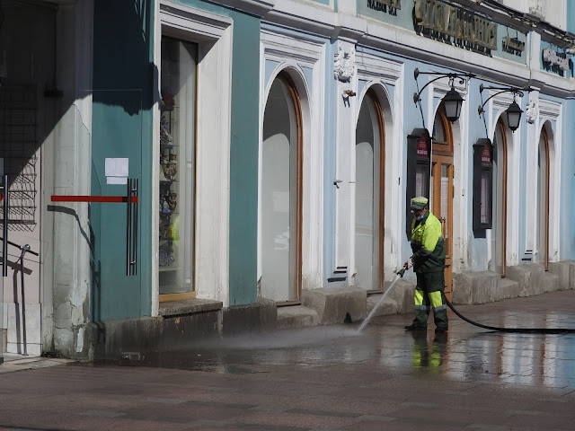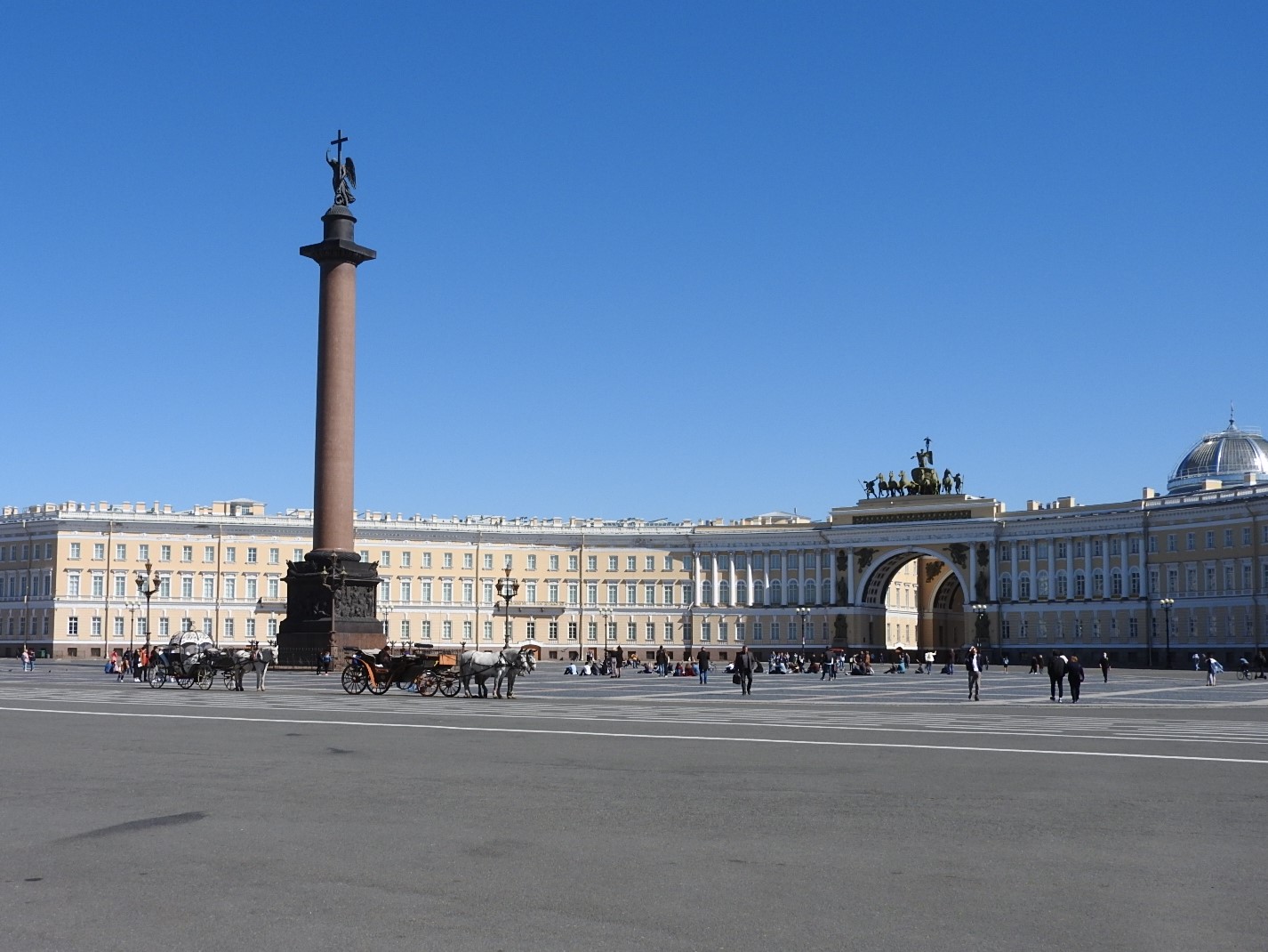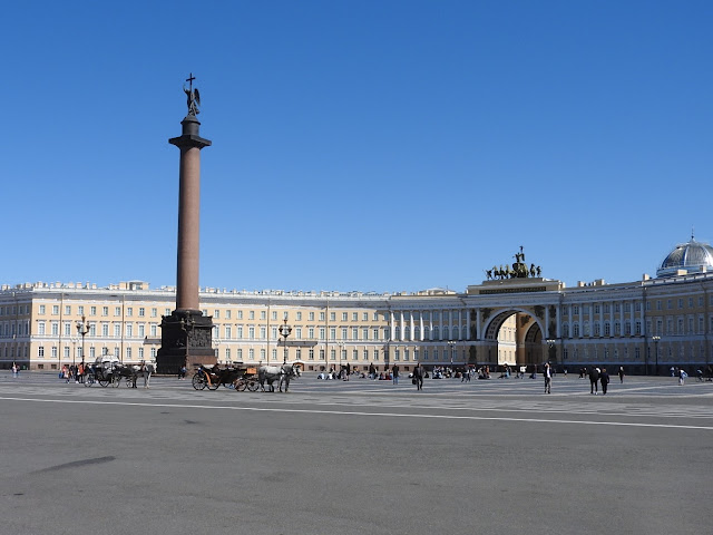 Кончился у нас карантин. На подступах к Дворцовой уже стоят хмурые люди с табличками "Обзорная экскурсия по городу" и наглые парни с голубями для фотографирования. На самой площади, которая, похоже, ничейная территория, завелись проклятые каретники-лошадники со своими ведрами и мешками.