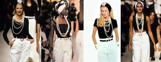 Величие Лагерфельда, работавшего для Пату, Бальмэн, Хлои и сестер Фенди, заключалось в том, что он мог быть креативным в самых жестких рамках, которые, похоже, сам себе ставил для интересности - твид, жемчуга и цепи, черное и белое, ок, не выкину ничего, но я переиграю вам всё это по-новому. В 90-е он обрезал твидовые юбки и жакеты, показав колени и пупы, представил бижу как рэпперский блинг-блинг, раздел моделей до трусов, тоже твидовых. В конце концов, он разрушил канон - впустил в мавзолей джинсы. На подиум танцующей походкой вышли самые красивые девушки на свете, каких уже не будет никогда. Молодость и энергия брызнула во все стороны. В зале сидели всё те же старухи и сосредоточенные азиатки, что-то беспрерывно записывающие в большие блокноты. В весенней коллекции 95-го года в финале на подиум вынесли моделей, косплеящих Габриэль Шанель с известной фотографии с Сержем Лифарём, и все они были одеты чуть-чуть по-разному. Это был своего рода манифест Лагерфельда - могу из ничего.