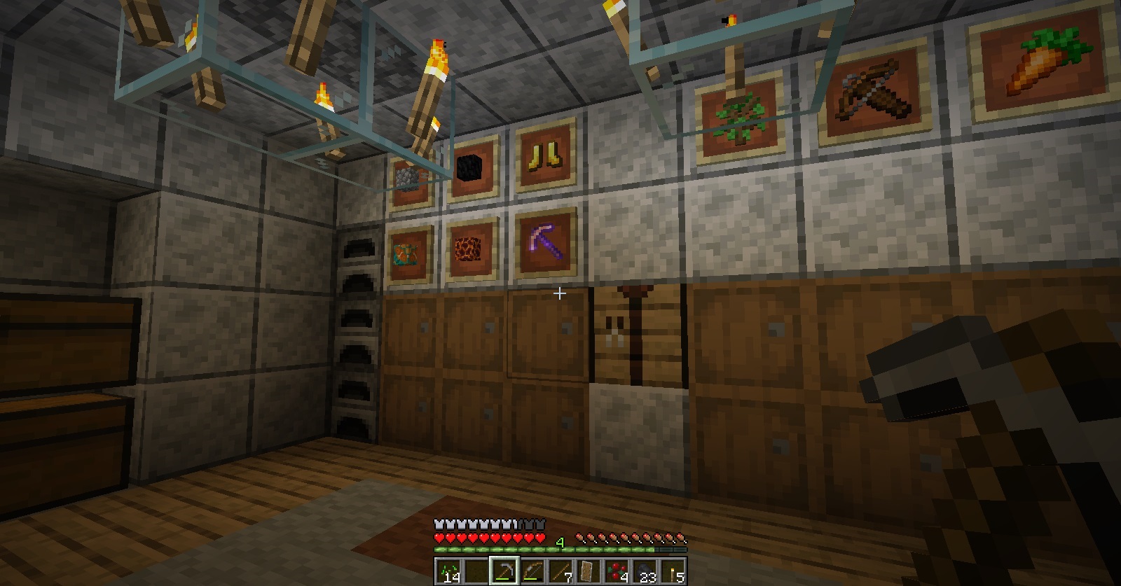 Моя жизнь в Майнкрафте После безуспешных попыток поправить демографическую ситуацию в пустынной деревне, дабы потом устроить трудовую миграцию ко мне в угодья, я занялась накоплением капитала - добыла алмазов и золота и оборудовала подвал по всей форме. Раскладываю в бочки золото-бриллианты, по ночам обжигаю кирпич и камень, пересчитываю морковь.
