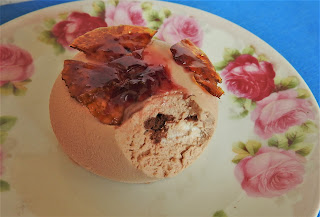 УПД. Что внутри: мусс из молочного шоколада, шоколадный бисквит в качестве дна, кусочки этого же бисквита внутри, карамельная крышка приклеена брусничным пюре (у меня с прошлого года две банки):