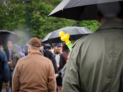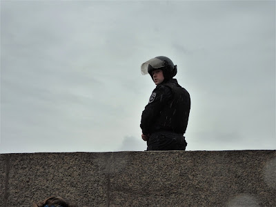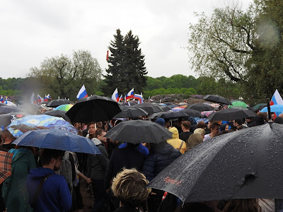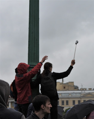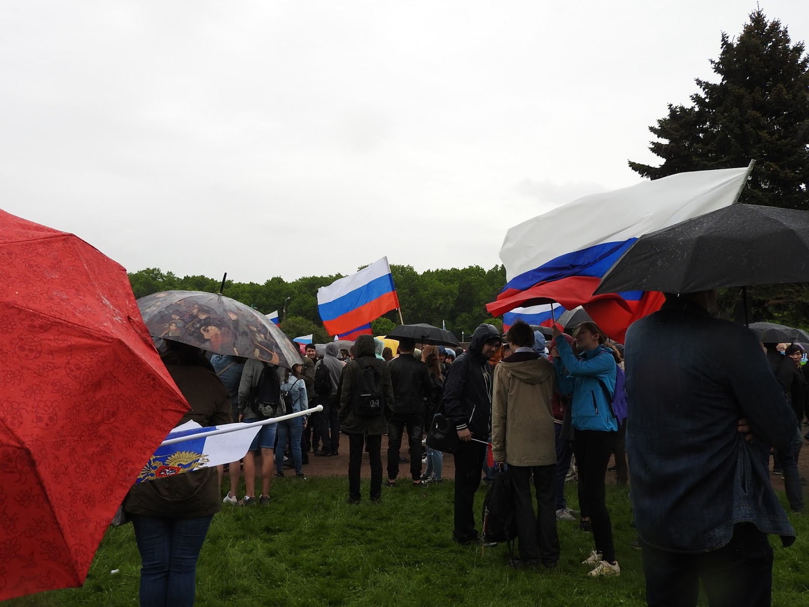 Митенк - ч.1 Как человек и блогер, я сходила на митенк, чтобы добавить своего мусора в новостную картину. Итак, митинг в Петербурге был несанкционирован, но на Марсовом поле заявлен какой-то другой, на который всё равно особо никто не пришел, чем по привычке и воспользовалось протестное население. Сборище было назначено а 2 часа дня, но в это время проходил цветочный парад на Невском, о котором позже, а потом испортилась погода, так что в 4 часа народ активно потянулся к выходу. Омония нагнали много - практически весь периметр Марсова поля был уставлен машиными и народ бегал селфиться на их фоне. Самих же митингующих был не много - активное ядро где-то человек 800 плюс зевак вокруг еще порядка тысячи по моим оценкам. Народ уходил и приходил, так что всего, наверное, за это время было тысячи три. Центральную часть вокруг вечного огня оцепили, так что тусовка в основном происходила на стороне напротив Летнего сада. Вокруг тусни на поле стояли кофейные фургончики и небольшие шатры, где можно было переждать дождь. Так что это была странная смесь городского увеселения и демонстрации сил ОМОНа и полиции. Махали триколорами и кричали "Долой царя!". Естественно, кто-то должен был залезть на столб. Но символом митинга был не флаг, не уточка, а палка селфи. Потому что снимали все. Я не видела, чтобы кого-то забирали, в автобусе сидели люди средних лет и читали какие-то бумаги, но переодически народ начинал разбегаться с криками в разные стороны. Вероятно, кого-то всё же задержали. В телеграме пишут, что 100 человек, но так не похоже было. |