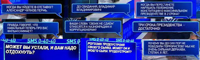 По какому-то недосмотру на экран в прямой трансляции на трех федеральных каналах выводят смс-сообщения. Часть взяла из телеграма, что-то успела снять сама: