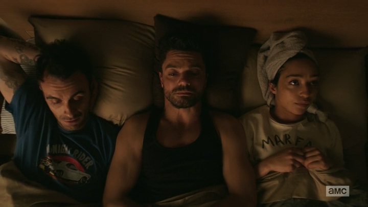 Preacher - 1-я и 2-я серия (2) - рекап Второй сезон начался подозрительно бодро. И если первая серия еще могла быть случайностью, в конце концов, пилот тоже был неплохой, то после второй появилась надежда, что так теперь и будет, не то, что в прошлом году. Главное, они прекратили пилить действие на псевдоклифэнгеры и теперь нет этого сюжетного заикания. Впрочем, еще не вечер, хорошую вещь завсегда испортить можно. Джесси, Тулип и Кэссиди отправились, наконец, на поиски Бога. Кэсс в этом сезоне увлекся конспирологией и рассуждает о заговоре олигархов, утилизирующих крайнюю плоть в промышленных масштабах. Компания едет к знакомому Джесси, Майку, в надежде найти у него подсказку, где может быть Бог. Но по дороге они столкнулись с полицией и это была наименьшая из неприятностей. Потому что тут же объявилась и Большая Неприятность - неизвестный ковбой-терминатор, перебивший всех, кроме наших. Богоискатели не знают, кто он, а мы знаем - это Святой Убийц и он нанят Фиором убить Причера. Кровь-кишки-распидарасило на зависть каналу Старз, который особенно уважает такие вещи. И надо отметить, так будет и дальше. Майк оказался единомышленником Ройзмана: лечит свою паству от наркотической и интернет-зависимости путем запирания в завешенную тряпками клетку. У него там как раз сидит какая-то жертва Инстаграма. Джесси рассказал ему обо всем - о сбежавшем Боге, об ангелах и Генезисе - в надежде, что Майк, как книжник, может что-то им подсказать. Но в священных книгах такого не писали. Поразмыслив, Майк всё же вспомнил, что приходила к нему женщина из местного стрип-клуба и рассказывала, что у них бывал Бог. И была она при этом бледна, как приведение. У этой женщины не много удалось узнать прежде, чем её убили по случайности и по вине Кэссиди - Бог приходил в её вертеп послушать джаз. А Святой Убийц между тем наступает им на пятки - он уже убил Майка и настиг Причера и всех-всех-всех в мотеле, где как раз проходил слёт ассоциации любителей оружия. Но остановить Святого не может ни пуля, ни грузовик, ни Слово. У Кэсса появилась идея, кто может им помочь с ковбоем: он увидел по телевизору рекламу Удивительного Ганеша, который выступает с фокусами в казино "Мумбай". И в этом Ганеше он признал Фиора. Ну, правда, они не помнили в точности, кто он - ДеБланк или Фиор, но как разница, когда за ними гонится терминатор. Мы оставили его в прошлом сезоне одного на шоссе со своим сундуком. Там его подобрал фургон и отвез в казино, где бедный ангел безуспешно пытался покончить с собой. Один раз он с отчаяния сделал это на публике и имел успех. Теперь они вместе с местным Филиппом Киркоровым выступают со своим шоу перерождения. Фиора казнят разными изощренными способами, а он появляется живым и невредимым рядом с собственным трупом. От него Джесс и Кэсс узнают, что это ковбой не человек, а Святой Убийц и ничто не может остановить его. И что Фиор нанял Святого, чтобы убить Генезиса и Причера заодно с ним, и что тот находит их по Слову. Каждый раз, когда через Джесси говорит Генезис, терминатор "ловит сигнал" и отправляется прямиком на место. А Причер несколько злоупотреблял своим даром это время. В свою очередь они рассказывают Фиору, что Бог сбежал, и если Святой убьет Генезиса, то они никогда его не найдут и что теперь они на одной стороне, и он должен им помочь. Но Фиор несчастен из-за них в том числе и п