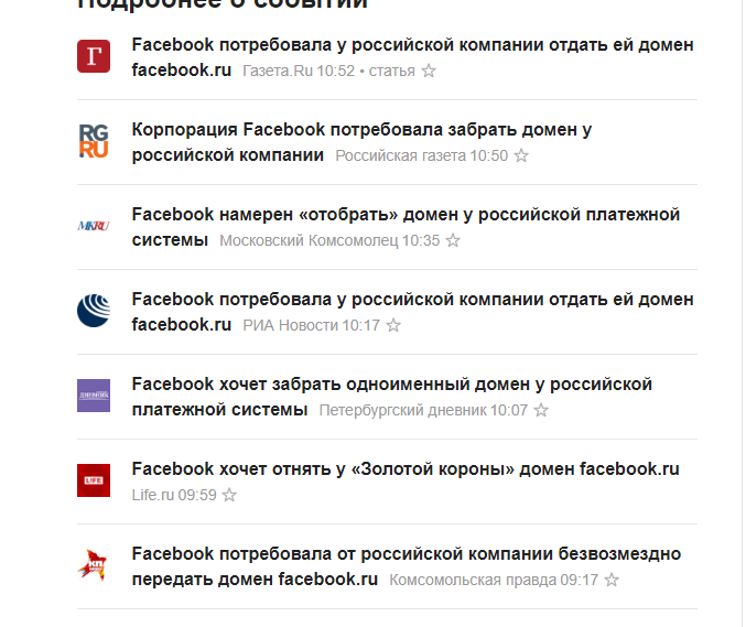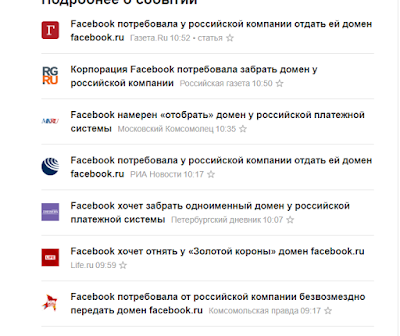 Искусство заголовков СМИшечки дружно делают вид, что не знают что такое киберсквоттинг и статья 1484 ГК РФ: Главное, расставлять нужные слова - отобрать, у российской, требует, безвозмездно. Ну прямо РЛО (если кто еще помнит, что это такое). В чем там суть дела: Корпорация Facebook требует безвозмездно передать ей домен facebook.ru, который с 2005 года принадлежит Центру финансовых технологий (ЗАО ЦФТ) и автоматически перенаправляет посетителей на сайт платежной системы "Золотая корона" |