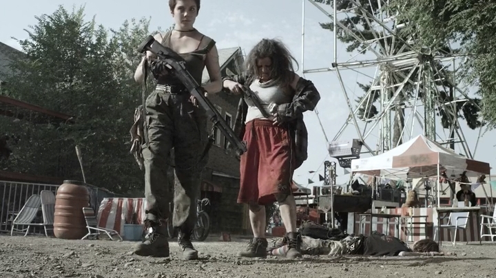Z Nation - 7-я серия (4) - рекап Наконец-то, люди! И не просто люди, а фэны детройтской метал-рэп группы Insane Clown Posse, с которой в своё время очень сильно поссорился Эминэм, хотя, казалось бы, они не только земляки, но и вышли с самого дна и в равной степени безумны. Фэндом ICP называется джаггало, их девиз "мы не банда, мы семья". О семье и идёт речь. А чтобы реальные джаггало не дулись на Азилум, апокалиптические фэны назвали себя заггало, взяв первую букву от "зомби". Но началось всё с похорон Люси, после которых у Мёрфи начался кризис и он старается кого-нибудь убить, чтобы излечить свою боль и гнев. Ехали они, ехали, и услышали крики о помощи, доносящиеся из заброшенного балагана. Там отряд нашел неприятную женщину в красных трусищах, привязанную к колесу обозрения. Женщина сказала, что её бросили на съедение зомби её парни, которые сейчас куролесят в доме. У них семья тут. Мёрфи полез разбираться с плохими мальчиками, за ним увязались Док, ДесьТыщ и Уоррен, а Лилли осталась с теткой в трусах слушать её рассказы из семейной жизни. Клоуны же захватили Мёрфи и товарищей в плен, мужиков пытают дурацкими пытками, а с Уоррен местный Король устроил сначала викторину на знание творческого пути ICP, а потом рэп-баттл. Уоррен победила Короля во фристайле, поэтому он решил на ней жениться и сделать её загголеттой и Королевой Загголо. Док и 10Тыщ стали гостями со стороны невесты, а вот Мёрфи повезло меньше - его всё время пытают током просто для звуковых эффектов. Но в разгар церемонии ворвалась Мама, женщинв в красных трусах, и стала воспитывать Короля. Он её никогда не слушался, не уважал и позорил её и отца, бросил её умирать на этом колесе, не позвал на свадьбу! Сын возражает, что он теперь взрослый, что хочет, то и делает, он тут главный. Решили спросить у папеньки, на ком теперь семья, но папа, оказывается, зомби и сидит привязанный к стулу в чулане. Началась семейная ссора, в которую вмешался Мёрфи, потому что он-то знает, что такое проблема отцов и детей, и не может видеть всё это безобразие, которое тут устроили эти клоуны. Он хотел примирить сына и мать, ведь у них больше никого нет, они должны ценить и любить друг друга, но одичалые клоуны слушать ничего не хотели, а продолжали сраться. Ну и понятно, чем дело кончилось. Тем же. чем и всегда - все умерли. А отряд продолжил свой путь, но теперь опять на север, в Ньюмерику. Потому что у Уоррен семь пятниц на неделе, то она хочет туда, куда ведут её галлюцинации, то в противоположную сторону, а остальным, похоже, уже всё равно, куда ехать, лишь бы ехать и пусть кто-нибудь указывает им путь, даже если этот кто-нибудь не в себе и сам толком не знает, в какую сторону ехать. |