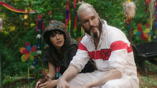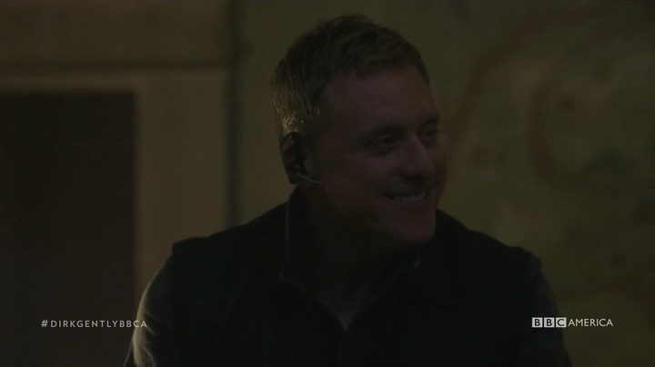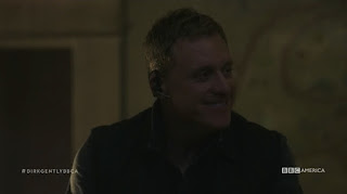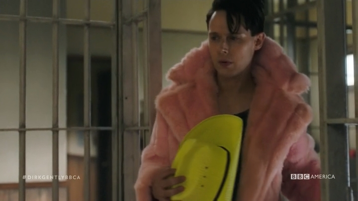 Dirk Gently's Holistic Detective Agency - 6-я серия (2) - рекап В прологе действие переносится на 50 лет назад, когда Кординасы обнаружили в поле тот самый корабль под названием The Infant. Male. Pollock. Francis, а на нём плачущего младенца. Могу предположить, что младенец был мужского пола, а звать его должны Фрэнсис Поллок. Был ли это будущий Арнольд Кардинас или кто-то другой, а котором Арнольд сказал, что он was not human, непонятно. В наше время Фридкин, узнав, что дебоширы пропали, а фамилия его лейтенанта Помощнек, и он ему не помощник. Посему единственным вменяемым человеком был признан Кен и ему вместе с корги выделили комнату с кроватью и душем, а то он до недавних пор жил в машине такси. И корги с ним. Что касается холистической компании, то все они проснулись после вечеринки в полицейском участе в бог знает каком виде, а Дёрк и вовсе в одной камере с Барт. Она поинтересовалась у него, понимает ли он, как всё устроено, вот эта взаимосвязанность всего. Он не понимает. Она тоже. Но у неё есть чувство, что всё это очень плохо кончится. Выгнав всех гостей вечеринки, Тодд, Тина, Фара и Дёрк стали расспрашивать Панто Троста, не знает ли он Сюзи по Вендимору. Но он никогда её не видел. Посему остальные решили, что она, конечно, ведьма, но явно начинающая, потому что не смогла убить Дёрка, как очевидно собиралась, а наслала какое-то любовное заклинание, от чего вчера все себя так вели. Дёрк предположил, что согласно пророчеству Маг встретил своего преемника и это Сюзи Бортон. А это значит, что Маг находится в их реальности и всем грозит опасность. Они позвонили Сюзи, которая до этого превратила своего сына в жабу, чтобы не надоедал, и она грозит убить их всех! Сюзи - любопытный пример интерпретации модного фем-дискурса. Конечно, она была гадкой до того, но что за жизнь у неё была? Школьные подруги её ненавидели, муж не ценил и даже не заметил её усилий по улучшайзингу, сын только требовал от неё то того, то сего, а чаще - вернуть ему его телефон. Она была никто, домашняя рабыня. Палочка дала ей силу, Маг обещал сделать её королевой. Она, наконец-то, вырвется из домашнего рабства. Надо только убить одного несчастного Дёрка Джентли. А эти люди стоят между ней и её свободой и властью, затаскивают её обратно в грязь. Этому не бывать! Girl power! Казалось бы, здесь разыгрывается старое клише - освобожденная или бунтующая женщина превращается в ведьму (о, сколько их было - "Иствикские ведьмы", "Практическая магия", "Баффи", "Зачарованные", "Сейлор Мун" в конце концов, хотя она не ведьма, но тоже колдует. "Мастер и Маргарита" опять же). Но в "Дёрке Джентли" его вывернули наизнанку - объективно ярость Сюзи понятна, но она всё равно не тянет на силу если не добра, то справедливости. Нельзя сказать, что её муж и сын не заслужили наказания, а мир - разрушения, но всё же освободительный пафос Сюзи не вызывает сочувствия. какая-то просто озверевшая феминистка. Хи-хи. Тут надо сделать небольшое отступление. Маг, увидев фреску в доме Кардинасов, понял, что в Вендиморе его ничего хорошего не ждет. Он был и будет там злодеем, которого всегда будет побеждать некий мальчик. Так зачем же туда возвращаться и захватывать эту юдоль скорби? Лучше он останется здесь, в большом новом мире. Это обеспокоило Сюзи. Она как раз хочет в Вендимор или куда угодно, где она будет царствовать. Её, как и Дёрка, осенило, что всё дело в мальчишке Кардинасов, Арноль