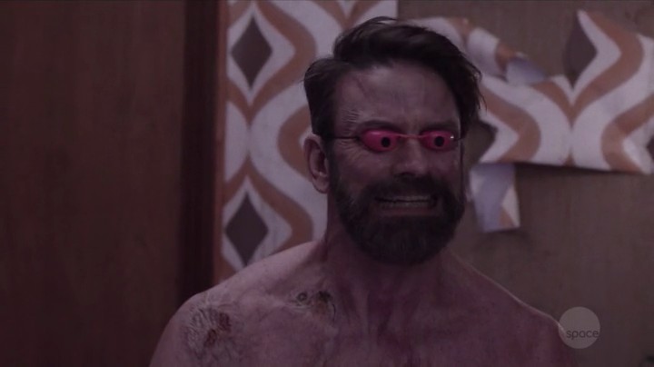 Z Nation - 10-я серия (4) - рекап Если в "Нацию" возвращаются Скетчи и Скизи, значит, мы играем в вестерн. В этот раз не столько вестерн, сколько "Суини Тодд, демонический паримахер", но в целом законы жанра соблюдены. Наш отряд "Покусон" попал в какую-то пенно-банную бурю, как будто торнадо обрушилось на склад средства для мытья посуды. Очень бюджетная катастрофа с точки зрения кино - знай, гоняй ветродуем пену. В этой банной фантазии члены команды разбелись кто куда, и только Док и Мёрфи вышли на свет сквозь мглу и пузырики. Спасительным островом цивилизации, где есть не просто электричество, но и работающий солярий, оказалась парикмахерская, где они встретили старых знакомых - Скетчи и Скизи. Раз уж зашли, то решили и подстричься, хотя оба их товарища по прошлым шалостям всячески вращают глазами и корчат рожи. Пока парикмахер Салазар отсвечивает опасной бритвой, Док пытается вспомнить, откуда он его знает. Что-то у него лицо подозрительно знакомое. Однако стилист делает морду зловещим кирпичом и уверяет, что сам он не местный, он вообще албанец. Между тем, на чердаке у него сидит глухонемой злодей в тулупе, а в подвале голодные зомби. Но пока он бреет Мёрфи под праздные разговоры Скетчи и Скизи об истории сэндвича. Закончив бритье, он потянулся к ручке кресла, но двое разговорчивых разбойников настойчиво предложили Мёрфи попробовать солярий "на солнечной энергии". Я не знаю, как у них работают батареи, на улице тьма египетская. В солярии Скетчи попытался предупредить Мёрфи об опасности запиской, но тот все проигнорировал. Впрочем, в самом аппарате обнаружился зомби, пригревшийся там с неизвестных времен. А Док очень некстати вспомнил, откуда он знает Салазара, тот его бквально как-то оставил без штанов. Он грабитель и жулик. Началась потасовка, Салазар чуть не спихнул Дока в подвал к зомби через тайный люк, который открывался рукояткой кресла, но Скетчи и Скизи помешали этому. Ворвался глухонемой в тулупе и стал стрелять во все стороны. Парикмахер и его подручный пригрозили всех убить, но тут в салон ввалились 10Тыщ и Лилли. Лилли высморкалась пальцами, 10 Тыща вырвало прямо в камеру (буэ), и тут же вырвало всех остальных. Опять начелась стрельба и драка, а Мёрфи выпустил из солярия зомби-женщину, которая там лежала. Жуткая жуть, она вся сморщилась, сиськи до пояса, живот до колен. Буээээ. Всюду рвота и все на ней поскальзываются. Тут оказалось, что Скизи укушен то ли женщиной из солярия, то ли Скетчи. Встает вопрос, что с ним делать. По идее надо его убить, пока он не обратился, но его товарищ уговаривает не делать этого. А если убьют их обоих, то они могут превратиться в неубиваемых новых зомби тогда всем кирдык. Салазар предложил решение - отрезать Скизи (можно вместе со Скетчи) руки и ноги и скинуть в подвал к другим зомби. Устроили голосование - отрезать конечности или выгнать на мороз в пену, но тут пришли новые посетители, которых тоже стошнило. Скетчи в это время съел какой-то ключ. После препирательств Скизи выгнали на улицу, но перед этим Скетчи позеловал его в засос и передал ему ключ, который непонятно какую роль играл вообще, потому что сценаристы не заморачивались объяснениями. Новоприбывшие оказались бандитами и тоже захотели всех ограбить, хотя брать вообще-то нечего. Фен, что ли? Но Скетчи обманом отправил их в подвал, где из съели зомби, а Салазар