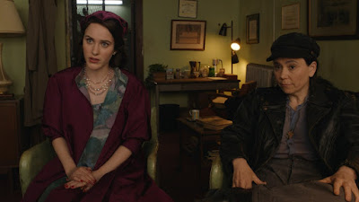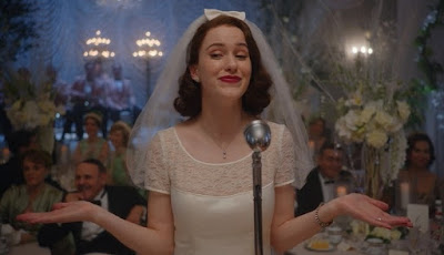 The Marvelous Mrs. Maisel - 1-й сезон Пилот "Миссис Мейзел" вышел задорным и я подумала, что вот у нас теперь новый GLOW и "Агент Картер": история женщины, отважно выступающей на чужом поле, на фоне ретро-декораций. И по иронии судьбы Рэчел Броснохан, исполнительница главной роли, в школе занималась рестлингом. Но дальше меня ждало разочарование, хотя сериал вне всяких сомнений смотрибельный, Броснохан чертовски обаятельная, картинка, как водится, eye candy, костюмы отличные, декорации масштабные, правда, с песнями из мюзиклов слегка перебор, но я ненавижу саундтреки в любом случае. Это лучший сериал для новогоднего, эээ, какой русский эквивалент придумали для binge watching? Для просмотра в один присест? Он легкий, он забавный, он на модную тему, бла-бла-бла. Итак, конец 50-х, до Mad Men всего пара лет, образцовая домохозяйка, девушка из состоятельной еврейской семьи, Мириам "Мидж" Мейзел живёт благополучной жизнью. Она успевает всё - смыть косметику, когда муж уснул, и накраситься и уложить волосы до того, как он встал, приготовить еду, сдать детей родителям, выслушать назидания, встретиться с подругой, помочь мужу в его стремлении стать самодеятельным комиком в свободное от работы время, в общем, сделать то, что положено делать идеальной жене. Но грянул гром - муж сознался в измене и хлопнул дверью. Мидж, основательно заполировав обиду вином, отправилась в клуб (на самом деле это называлось "кофейней" в 50-е, там подают только кофе), где он тешил своё тщеславие в качестве остряка-стэндапера, и выложила со сцены всё, включая сиськи. Сорвав аплодисменты, Мидж тут же оказалась в участке за непристойное поведение, где познакомилась с Ленни Брюсом. И дальше всё завертелось. Мидж ищет себя в жизни и на сцене, свой голос, своё имя, свой характер. Что мне не понравилось: во-первых, провисание действия. После пилота в судьбе Мидж не происходит особых виражей, драматургически всё довольно монотонно. Да, она устраивается на работу, да, она пробует выступать в клубах, и даже наскандалила в суде, но большую часть времени она с родителями проводит за разговорами о том, как помириться с мужем. А говорят они все много и сплошь монологами из стэндапа. И тут вторая беда - это более или менее остроумно, но не смешно. Там нет ни одного запоминающегося панчлайна, вроде "Водки на завтрак" или "In Soviet Union we drink tea with pain" и нет ни одной комичной ситуации. Остроумие Мидж и её окружения не привязано к какому-то смешному микросюжету, оно существует само по себе, миссис Мейзел просто всё время острит. Остальные персонажи двумерны и, по большому счету, не имеют характера. Даже Сюзи, добровольный агент и менеджер Мидж, женщина на первый взгляд со сложной судьбой и характером, на деле просто никакая - она тоже начинает разговаривать этими "комическими монологами", от чего складывается ощущение, что она говорит сама с собой или выступает перед воображаемой публикой. В "Миссис Мейзел" у неё та же функция, что у режиссера-неудачника в GLOW, но его сложили из мелких деталей, как паззл, и получился запоминающийся, цельный персонаж. Сюзи запоминается только благодаря внешности и манере одеваться. Всё остальное - картонный стереотип. Она мужиковата, ест фасоль из банки и привыкла совмещать роль вышибалы и критика. Сезон почти полностью сфокусирован на семейных передрягах Мидж, её карьера начинающего стэндапера развивается совс