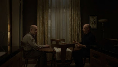 Counterpart - 4-я серия - рекап Джей Кей Симмонс, конечно, велик. Когда оба его Ховарда в кадре, особенно заметно, насколько он физически становится другим, как спина Доброго Силка сутулится, его движения становятся по-стариковски медленными, как Злой откидывается назад, его жесты уверенны. И даже когда они меняются ролями, и надевают одежду друг друга, это не только не сглаживает, но усиливает контраст. И отличный дуэт с Эмили Бёртон. Она видит, что это не её бывший муж и его двойник одновременно удивляет и умиляет её. А вообще персонажи из Другого Берлина, как было сказано в прошлый раз, более жесткие, относятся к своим двойникам немного покровительственно - жалеют их, хотят защитить, как слабую часть себя. Это касается Болдуин, например. Но не Злого Силка. Потому что, кажется, он занял место в Нашем Берлине не под влиянием обстоятельств, а в этом и был план. И это не на неделю, как он убеждает Нашего Силка, а навсегда. Такой вывод можно сделать, потому что он выпивает бутылку спиртного, которую тот берег до времени, когда жена выйдет из комы. Он, кстати, не ходит ей читать. Он бросает работу Силка. Свою квартиру он оставляет абсолютно пустой, вычистив своё присутствие и свою личность, он не оставляет Нашему Ховарду никаких указаний, просто живи, как знаешь. Такое ощущение, что он сжег все мосты по обе стороны границы. Поскольку Эмили Бёртон, выжившая после покушения, догадалась, в чем дело, то, наверное, догадаются и другие коллеги Силков. Но интрига в "Дубликате" развивается пошагово, как было заметно по истории с сигаретами - после первых рекапов возникли разногласия, что такого запрещенного курила Эмили, потом стало известно об эпидемии, а сейчас на границе человека за провоз сигарет отвели неизвестно куда. Нас сначала сбивают с толку и интригуют, потом создают контекст, потом секрет раскрывается. Надо сказать, что у Другого Силка тоже есть бутылка на свой важный случай: к своему спящему агенту, Хайнриху, он приходит с бутылкой "Русского стандарта". Вообще нам всё время ненавязчиво указывают, что Другой Берлин более "социалистический": болгары-контрактники, русская водка, не очень развиты технологии (хотя с ними пока не всё ясно, мобильные-то там есть), но хорошая медицина (напрашиваются аналогии с Кубой), чуть лучше дела с экологией, зато всё хорошо с пропагандой, постоянные упоминания трудного прошлого (пока Наш мир жил, как жил, Другому приходилось бороться за выживание). Что касается сюжета, то теперь мы знаем, что Александр Поуп (интересно, чем обусловлен выбор имени) 20 лет назад создал сеть нелегалов в Нашем мире, и Другой Силк играл в создании этой сети важную роль. Сейчас в руководстве их кегебейки назрел заговор, в котором Поуп принимает деятельное участие, хотя формально находится на вроде бы на пенсии по состоянию здоровья. Целью заговора является какой-то серьезный переворот, возможно, местная Перестройка. У Поупа есть серьезный агент в Бюро Нашего Мира - кто-то уровня директора в Стратегическом отделе. Структура Бюро вообще пока не ясна. Известно, что там есть этажи: третий этаж - это стратегия и, возможно, аналитика, четвертый - руководство. Вряд ли крот - это Квейл. Он даже не знал, что Эмили Силк была двойным агентом - работала в ведомстве Олдрича и стала информатором Другого Силка, когда узнала, что с этой стороны в Бюро тоже что-то не так. Ламб