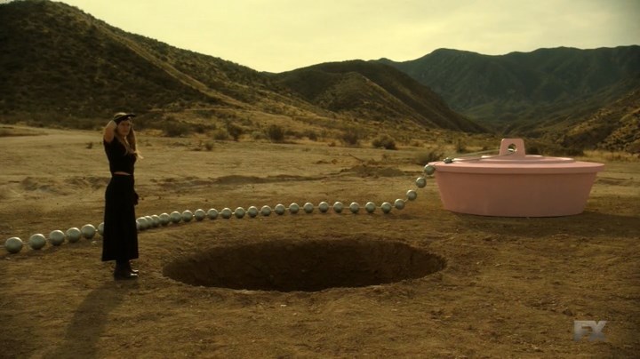 Legion - 9-10-я серия (2) - рекап Прошлую серию я не рекапила, потому что в ней не произошло практически ничего. Керри/Кэри и Ленни догадались, откуда взялись навязчивые образы в их голове и после некоторых сомнений, в основном у Ленни, отправились исполнять план Дэвида. А Мелани еще две недели назад втянулась в психологические игры Фарука, который воспользовался её депрессией из-за Оливера и краха цели всей жизни, отчего она стала употреблять наркотики и вести мужененавистнические разговоры со всяким, кто зашел её проведать. Теперь она полностью погрузилась в мир своих мрачных грез, где Фарук в образе Оливера уговорил её помешать Дэвиду в том, что бы он там ни задумал. Она стала тайным агентом Фарука. В прологе десятой серии мы видим Дэвида уже Легионом, сидящим на горе костей, так что всё закончится не очень хорошо, но не в этой, а в финальной, одиннадцатой, серии. А сам "Легион" продлен на третий сезон, хотя рейтинги этого падали и падали. В пустыне Мелани заманила Сид в дыру в земле и стала убеждать, что Дэвид мало того, что особо опасный больной со сверхспособностями, но еще и очень плохой человек. Она использует то, что подслушала в разговоре Сид и Кларка. Все сомнения Сид находят подтверждение, все аргументы в защиту натыкаются на контраргументы. В прозрачных блюдцах Мелани показывает Сид прошлое и настоящее Дэвида. Он лжец и психопат. Он не любит её. Он изменял ей с ней будущей и с Ленни. Сейчас он пытает Оливера и получает от этого удовольствие. На самом деле это не Мелани, а Фарук в теле Мелани. А Дэвид пытает настоящего Оливера в монастыре. Фарук каким-то образом вынудил его молчать о том, где Сид, чтобы было, чем занять Дэвида, пока Король Теней решает свои телесные проблемы. Лабиринт, в котором Мелани-Фарук устроил себе логово, ведет к его саркофагу. Оставив Сид в отчаянии, Фарук, ведомый минотавром, находит своё тело и вселяется в него. В это время к монастырю или дыре, его заменяющей, сходятся Керри/Кэри, Ленни, вермильоны и Кларк с гигантским камертоном - Глушителем. Он должен был на несколько минут погасить суперсилы всех вокруг. Видимо, Дэвид собирался убить Фарука по старинке, но всё пошло не так. Фарук вывел его из себя, похитив Сид, и отвлек его агрессию на Оливера, а когда прибыли остальные, он уже обрел свое тело и стал почти всемогущ - разогнал вермильонов, выкинул Глушитель, а минотавр, кажется, вот-вот убьет Сид. Но тут является обновленный Дэвид и говорит "Бу!". При полном визуальном кавардаке, психологически серия стройная. Мелани положила пол жизни на возвращение мужа и на продолжение его работы. Но когда он вернулся, он не испытывает к этой немолодой женщине ничего и вообще застрял в шестидесятых. А дальше его похищает Фарук. Жизнь Мелани разрушена, смысл потерян. Отчего она теперь постоянно жалуется на мужчин другим женщинам помоложе. Сид с тех пор, как её отношения с Дэвидом прошли романтический период, мучается ревностью к себе будущей, и где-то даже к Ленни, подозревает, что Дэвид ходит куда-то, а ей не говорит, куда на самом деле. В реальной жизни она бы уже прошерстила его смартфон и почту. Ей столько раз сказали, что Дэвид болен, что она забыла, где она с ним познакомилась и как туда попала. Для Дэвида Сид была якорем, который держал его на земле, благодаря ей он оставался вменяемым и нормальным. А потеряв, съехал с катушек. В какой-то