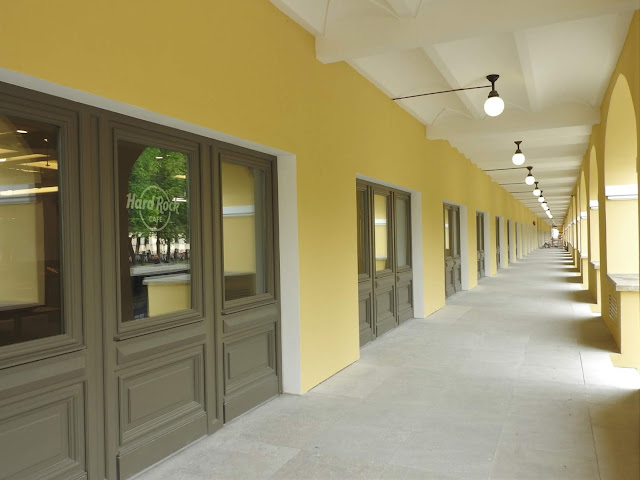 Про кафе Да, это настоящее Хард Рок Кафе и оно не маленькое. Вот на переднем плане последнее окно с его логотипом, здесь оно заканчивается, а вход вон там вдалеке, где красная точка: И указалки уже повесили: Не знаю, насколько это всё важно для нашего района, но хоть будет куда зайти съесть бургер иногда. |