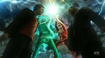Legion - 11-я серия (2) - рекап Ииииии... финал сезона! Холи начал серию с музыкального номера, которые ему вообще удаются. Я не могла отделаться от стойкого чувства, что тут он покинул территорию Кубрика и Линча и отдал дань уважения Алану Паркеру и Кену Расселу. Ассоциация с Паркером для меня была достаточно очевидна - включение анимации вытащило из памяти сцены из "Стены" Пинк Флойд, но вот чтобы для себя самой объяснить, почему на ум пришел Рассел, пришлось погуглить. Песня, под которую появляются Дэвид и Фарук, это хит The Who "Behind Blue Eyes", который я идентифицировала, как The Who или что-то подобное, чисто интуитивно, как мне показалось, хотя "интуиция" - это просто распознование микродеталей уже на бессознательном уровне. На самом деле я слышала и The Who, и эту песню сто раз. А кинематографически The Who - это прежде всего "Томми", а "Томми" ставил Кен Рассел. Для иллюстрации, чем была инсперирована психоделическая стилизация под 70-е, отрывок из "Томми" Рассела с Джеком Николсоном: Behind Blue Eyes относится к другому альбому, но того же периода - середины 70-х. Она была написана для несостоявшейся фантастической рок-оперы Lifehouse и петь её должен был злодей Джамбо. Как писал Пит Таунсенд "that was a song sung by the villain of the piece, the fact that he felt in the original story that he was forced into a position of being a villain whereas he felt he was a good guy.". Ровно то же происходит и с Дэвидом в финале - он обнаруживает себя в роли суперзлодея, хотя всю жизнь считал себя хорошим парнем. Оставим культурные экскурсы и вернемся к сюжету. Несмотря на то, что план Дэвид вроде как провалился, а Фарук взял реванш, дела не так уж плохи - Глушитель воткнулся в землю как надо, Ленни со своим магическим гранатомётом сидит на позиции, а сам Дэвид полон решимости и сил. Сначала он сразился с Фаруком астрально, потом Ленни выстрелом включила Глушитель, так что он уже смог забить Короля Теней более традиционным способом - ногами и руками. Убийству помешала Сид, которая, кстати, успела оторвать голову Минотавру. Она появляется с самой пугающей фразой, на которую только способна женщина, - "Нам надо поговорить. Прямо сейчас.". В реальной жизни это означает, что дела очень плохи. Так оно и есть. Сид считает Дэвида злодеем похуже Фарука, ни болезнь, ни сам ментальный паразит не могут оправдать убийств и пыток, а главное, того, что Дэвиду это нравилось. Это он уничтожит мир. Он не герой-спаситель мира, она - герой. И она стреляет в Дэвида. Голоса, которые слышал Дэвид, обретают свои личности. Эти Дэвиды убеждают его, что его представления о себе, как о хорошем человеке, достойном любви, и есть его бредовая идея, его яйцо делюзии. Она зародилась в нём, когда он увидел Сид в дурдоме. Он должен понимать, что он бог, а с ним обошлись, как с мусором, потому что боялись его, боялись, что он поймет уже, кто он есть на самом деле. И Сид не ангел-хранитель, а просто часть враждебного мира. Ленни спасает Дэвида от смерти, Сид потеряла сознание и теперь мало что помнит, Фарука схватили Лодермилк и Адмирал Фукияма. Теперь Король Теней носит "корону", блокирующую его суперсилы. Все возвращаются в Третье Подразделение. Сид хочет побыть одна, но Дэвид отправляет к ней в комнату свою проекцию и они занимаются сексом. Он просит её уехать с ним в глушь, жить там в домике, завести кур и собаку. Они снова вместе, они любят друг друга. Другая проекция Дэвида идет к камеру к Фаруку попрощаться. Если завтра суд не