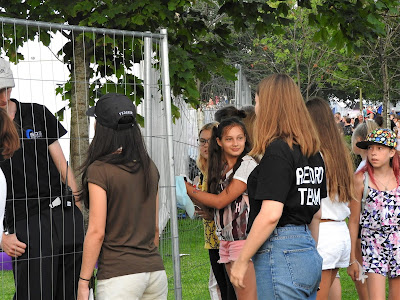 ВК Фест - ч.2 - музыка За что же берут такие деньги? За музыку. Основных сцен две: Синяя - для попсы, Белая - для альтернативных исполнителей. Это условно, конечно, но когда я приехала, на Синей певица Лабода исполняла лабуду. Я одновременно и понимаю, и не понимаю, как такое может пользоваться популярностью в наше время. На Белой же сцене, которая находится в другом конце фестиваля, ждали Монеточку. Гречка тоже была, но как начинающая звезда, она пела днем. Монетку же поставили в премиальный пакет. Я пока её ждала (как и все), смотрела выступление ютюбера и битбоксера Валентина Фокина, который мне очень понравился. Он и битбоксил круто и с публикой общался спокойно и уважительно. А публика у них, видеоблогеров, сами знаете, какая, мал мала меньше. Это они тянут руки, чтобы задать вопрос: Надо сказать, вопросы они задают любопытные, а главное, они говорят коротко, без долгих вступлений. Учитесь, журналисты. Эти детищи спрашивали, кстати, какие-то профессиональные битбоксерские штуки. Спросили, сколько Валентину лет. Ему 30. По идее, он для них должен быть старый дед, но нет. "Валя, расскажи, когда ты понял, что станешь популярным?". Он предложил исполнить какую-нибудь мелодию на их выбор, из публики крикнули "Группу крови!". Валентин вздохнул и сказал, что чувствует себя Татьяной Булановой. Ну то есть, какой Цой, вы чего. Но сделал свой кавер и неплохой. А рядом стояла очередь за автографом Кати Клэп. Вобщем, я там бесцельно слонялась, перемазанная кетчупом, а когда прибежала к 7-ми часам смотреть на Монеточку, на сцене обнаружился Фейс. Монеточки я так и не увидела и не знаю, была ли она. Там в общем грохоте же и не узнаешь. Слухи о популярности Фейса сильно преувеличены, народу на него смотреть собралось немного, а по соседству вообще люди были заняты своими делами (ели что-нибудь) и никакого Фейса в их жизни не существовало. Он, конечно претенциозный дурачок. Выступал с проповедями, обличал ватников, и когда он сказал, что вата болеет за нашу сборную по футболу, ему забукали. Мол, хватит чушь-то болтать, давай, пой свои Версачи. Зато он фактурный, его снимать хорошо, наш красный Игги Поп. Хотя на сцене адски дымили и половину времени он выглядел так: За забором его ждали фанатки: После Фейса тоже не было Монеточки, а была Манижа. Она не старовата для, это, рэп-сцены? Впрочем, это не был рэпчик. Пришлось вернуться обратно к Белой сцене, где Хаски публично впадал в депрессию. Невыносимый зануда. Тут я потащилась к выходу и застала Басту. Он, конечно, теперь главный народный певец и рэпер. Песню про голоса детей рядом со мной запели два модных молодых узбека, а сзади пятилетняя девочка. Он вообще на удивление завел публику, чего, как мне показалось, сам не ожидал. Все махали телефонами и пели с ним довольно стройно. Так я не увидела Монетку. |