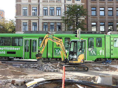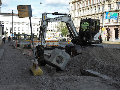 Всё еще ложут Полтора месяца назад я снимала, как ложут (я настаиваю на этом термине) плитку в Ванхельсинске. И вот тот же перекресток у Шведского Театра: Техника, как можно заметить, брошена в тот момент, когда на Финляндию обрушился обеденный перерыв длиной в месяц. Тут даже почти закончили: Вот он, памятник финскому трудолюбию: Но в этот раз хотя бы один рабочий в нарядной форме стоит: А у нас за этот месяц на Садовой от площади Репина до Никольского собора асфальт сменили и всю плитку на тротуарах положили по новой. И люки новые закатали. А так-то если вот так стоять и или сидеть наши тоже умеют. В этой части все по международным стандартам. |