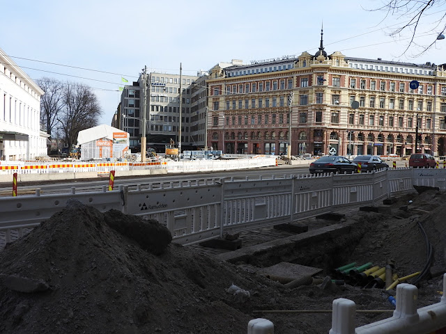 Реновация продолжается Продолжаем наблюдать за ходом ремонтных работ в Хельсинки. Если вы помните, рыть на злосчастном перекрестке Булеварди и Манергейма начали еще прошлым летом. И до сих пор всё роют. Вот тут даже прогресс заметен: Потому что в конце сентября это было вот так: Собянина им туда. Он бы за это время пять раз переложил плитку, посадил бы пластмассовые сакуры, заменил бы их на ёлки и провел бы ярмарку варенья. Но приятно видеть, что есть вещи неизменные - вот эти финские ямы, например. |