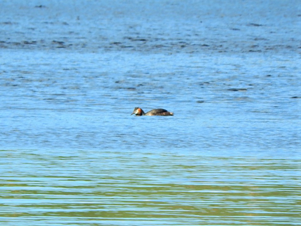 А на озере плавала вот эта. Я думала, утка. Очень далеко, плохо видно. Сняла для интереса. А это кто-то вроде чомги: