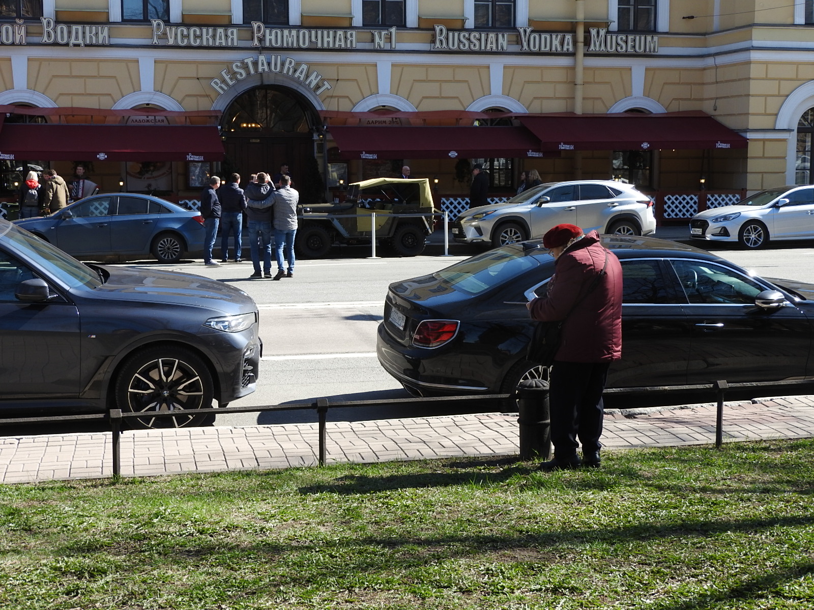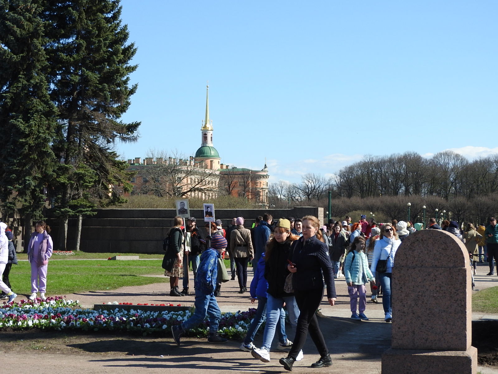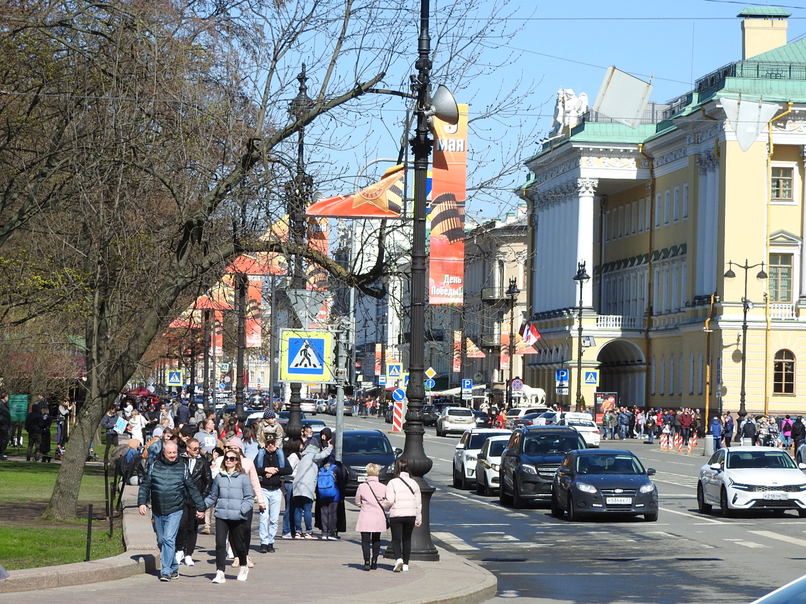 9 мая в городе Утром разбудил очередной авиапарад - с прошлых выходных летали прямо надо домом. Самые шумные - вертолеты. Сегодня был первый ясный день, всю неделю лил дождь и было холодно, и вот наконец-то солнце. Поэтому народ выскочил на улицу и ходит туда-сюда с едой. На Конногвардейском целыми компаниями выгружают из сумок контейнеры с картошкой фри и бургерами и едят. Это вместо шашлыков, как я понимаю. Напротив у "Рюмочной №1" ряженные играют на гармошке. Старушенция сняла их на планшет, наверное, пошлет подругам по Вотсапу. С ленточками и в пилотках не так много людей, как обычно. На Дворцовой все фотографируются. Екатерины тусуются на подступах, зебр мало, но они всё же бродят в поисках добычи. На Марсовом поле блуждают не сдающиеся участники Бессмертного полка - его отменили и вообще пытаются вытравить, но люди пришли маленькими группами и ходят с портретами. У вечного огня столпотворение - сложили гору из гвоздик. Это, видимо, самодеятельный порыв. Правда, этот вечный огонь никакого отношения к Великой отечественной не имеет. Мемориал был создан в память погибших в Февральскую и Октябрьскую революции и Гражданскую войну. В Михайловском инстаграмщицы фотографирую пролеску. На Миллионной два дома декорированы в антивоенном духе. Исаакий тоже напомнил о Бессмертном полке (на фасаде фотография сотрудников музея в блокадном Ленинграде): В музеи и Хипстерятню очереди. Все воспользовались погодой и выходными. Обычная жизнь. Ничего эдакого. |