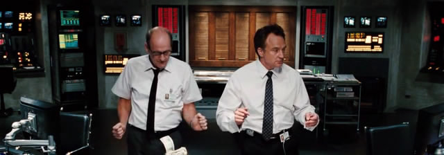 Хижина в лесу (The Cabin in the Woods) Дошли, наконец, руки до "Хижины". Я не знаю, почему хипстеры этот фильм объявили чуть ли не революцией в жанре. В "Хижине" Годдард и Видон сделали ровно то же, что почти одновременно с ними сделал Мёрфи в American Horror Story. Но Мёрфи, собрав все возможные клише и цитаты, всё же вышел за рамки фильма ужасов и сделал психологическую семейную драму, а Годдард и Уидон ограничились в общем-то развлечением. Причем, развлечением для гиков, хорошо знающих не только хорроры, но и сериалы самого Видона, благо Годдард с ним работал в "Баффи" и "Ангеле". То, что Джосс Видон автор сценария, можно догадаться даже не заглядывая в титры, достаточно диалогов, но в "Хижине" еще и полно узнаваемых отсылок к видоновским хитам. Не говоря уже о кастинге: Фрэн Кранц снимался у него в "Кукольном доме", Эми Экер - в "Ангеле", "Кукольном доме" и "Много шума из ничего", а мы её еще помним по 3-ей серии первого сезона "Сверхъестественного" (Dead in the Water), Том Ленк играл Эндрю в "Баффи" и "Ангеле". И еще отдельно хочется отметить Джодель Ферлэнд в своей коронной роли, но мы же не забываем, что как раз между "Страной приливов" и "Сайлент Хиллом" она снялась всё в том же "Сверхъестественном" в роли привидения-убийцы (Provenance). Проще говоря, мы в этом кино всех знаем. А в главной роли вообще Чулпан Хаматова: Но мало того, что люди, или в недавнем прошлом люди, в большинстве своем хорошо знакомы, так ведь и монстры просто как родные. Перечень чудищ почти полностью повторяет список Монстров Недели "Секретных материалов" и "Сверхъестественного", хотя туда они попали из более ранних фильмов ужасов: А кто этот Кевин, интересно, внизу таблицы? Выпавшая несчастным туристам zombie redneck torture family сразу же напомнила "Benders" из того же СПН, и еще немного такую же спятившую семейку в Family Remains оттуда же, хотя они не были зомби, но не многим от них отличались. У redneck torture family в кино история долгая, можно припомнить классическое "Избавление" с Войтом и Рейнольдсом. А фамилия Бакнеры немного созвучна с историческими Бендерами. Все остальные - клоуны, вервольфы, пугало, куклы, вампиры, вендиго, демоны, король Ада, wraith, у которого нет толком русского аналога, даже единорог-убийца - попадались под руку братьям Винчестерам, а в русала (русалка? merman), которого так хотел увидеть один из сотрудников безумного центра, превращался Вентворт Миллер в первом сезоне "Баффи". Это не считая разных классических чудищ, вроде гигантской змеи. И очень приятно, что Видон с компанией тоже любят "Восставшего из Ада". Сама организация, устроившая своё собственное ужасное "Шоу Трумэна" - это же чистой воды "Инициатива" из 4-ого сезона "Баффи", особенно её военизированная часть. Финальная битва между военным подразделением и монстрами фактически повторяет конец "Инициативы", только теперь уже можно кровь и кишки размазывать по стенам (а еще говорить слово fuck, ни того ни другого в "Баффи" делать было нельзя по цензурным соображениям). Плюс большой оммаж "Кубу" (по центру видно близняшек из "Сияния"): Но главное - сама подземная дыра, из которой должны востать Древние, это же Адова Пасть, Hellmouth! Появление Сигурни Вивер, женщины, так долго убивавшей Чужого, тоже можно считать символичным. А еще она похожа на злую профессоршу Уолш из 4-ого сезона "Баффи". Понятно, что все эти аллюзии и пасхальные яйца предназначены для очень конкретной аудитории, и мне д