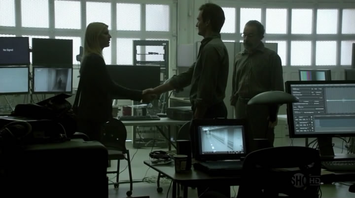Начиная с прошлой серии, сезон, по-моему, можно закончить в любой точке. Потому что непонятно, а что там дальше-то рассказывать. Весь первый сезон Кэрри не могла доказать, что Броуди шпион. Тут бац - вот и доказательства. Дальше только суд-тюрьма. Но есть, конечно, выход - не арестовывать Броуди, а последить за ним, чтобы выйти на Абу Назира со всей его Аль-Каидой. Так Сол с Кэрри и порешили. Сол пошел к Эстису, всё ему выложил, но решили вице-президента пока в известность не ставить, а сформировать оперативную группу, напихать везде камер и посмотреть, что будет дальше. И в эту группу, само собой, войдет Кэрри.