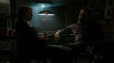 Ройя встретилась с неизвестным лицом ближневосточной национальности и что-то ему нашептала под сенью струй, но из-за шума фонтана ничего разобрать не удалось. Восточный человек от наружки убежал, да и грех было не убежать от немолодого дяденьки с гарнитурой в ухе (бедный Вёрджил!). Кэрри хочет вызвать Броуди для опознания этого неизвестного по фото, Квинн считает, что Броуди звать в контору не надо и вообще ему верить нельзя (хоть у кого-то в ЦРУ есть здравый смысл, говорю я каждый раз, и каждый раз этого человека никто не слушает). У Кэрри же железные доводы - он и так про нас уже всё знает, он мог бы нас сдать, но не сделал этого, мы всё равно от него зависим. ОМГ, Кэрри! Из того, что он вас не сдал со вчерашнего вечера, ничего не следует, у него времени не было, да и за ним присматривают твои же люди. А чтобы показать Броуди фотографию какого-то перца, вовсе не обязательно сообщать ему адрес тайного штаба. Есть у этой женщины представления о простейших правилах конспирации? Нету, говорю я вам. Особенно зная, чем серия закончилась. Броуди завез дочь в школу, где она будет страдать из-за сбитой ночью женщины, и поехал в конспиративный антитеррористический офис, адрес которого ему выслала Кэрри смс-кой. Вот как изменился шпионский кинематограф! Никаких хитрых устройств, тайных сигналов и сложных средств связи, послала смс и вот уже шпион стучится в дверь. Так послала бы ему фото подозреваемого сразу! Чего уж тут мелочиться. Неизвестного Броуди не опознал, но помявшись, сказал, что портного из Геттисберга они не найдут, потому что тот упал и умер нечаянно. Квинн страшно разозлился - у него в Геттисберге вокруг магазина сидит команда из шести человек и ждет возвращения шпиона (Квинн знал о точке в Геттисберге еще тогда, когда Броуди вывозил бедолагу?), а Броуди только сейчас соизволил сказать, что тот уже давно среди гурий в раю. Они с Кэрри немного спорят о методах, но решают отправить судмедэкспертов в Геттисберг, чтобы перерыть всю лавку в поисках улик. А еще надо потормошить Ройю, чтобы она вывела как-нибудь на нового мужика. А в это время... Майк и алкоголик Лодер проводят собственное рассследование смерти Тома Уокера. Они встретились с детективом, который обнаружил труп, и притащили его на место преступления. Уокер был убит одним выстрелом в упор между глаз из 9-миллиметрового пистолета. Лодер тут же приходит к отличному заключению - 9 мм это же военное оружие! Всё, преступление раскрыто. Майк говорит, что кто угодно мог стрелять из такого. Но Лодер настаивает - Уокер мог встречаться ночью в темном закутке только с хорошо знакомым человеком, всё, преступление опять раскрыто. Детектив говорит, что ЦРУ забрало дело. Ну Лодер тут и вовсе уверен, что тогда всё ясненько, всё понятненько. Цеэрушники прикрывают важное лицо и это Броуди. Дэйна бродит по больнице в поисках сбитой ими с Финном женщины. В округе Колумбия всего одна больница, куда привозят жертв автомобильных аварий? В прочем, какая разница, Дэйна как мучилась угрызениями совсети с начала серии, так и продолжает. Финн - плохой мальчик. так что лучше вернемся к службам национальной безопасности. Сол провел с Кэрри беседу по душам. Он обеспокоен её близостью к Броуди, как бы она опять не впала в зависимость. Но Кэрри не так проста. Никто не верил ей, что Броуди предатель, все считали его героем, почему ж