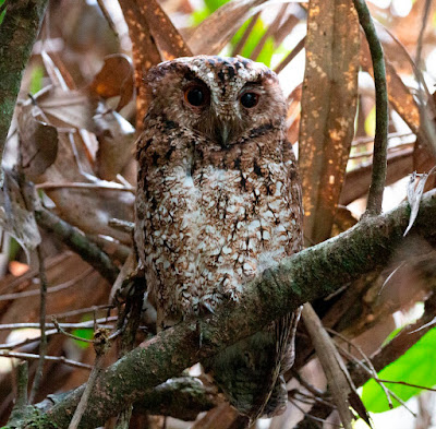 | The first photograph of the Bornean Rajah scops owl Otus brookii brookii in the wild. Smithsonian Migratory Bird Center ecologist Andy Boyce reported the rediscovery and photographed this elusive subspecies in the mountainous forests of Mount Kinabalu in Sabah, Malaysia.