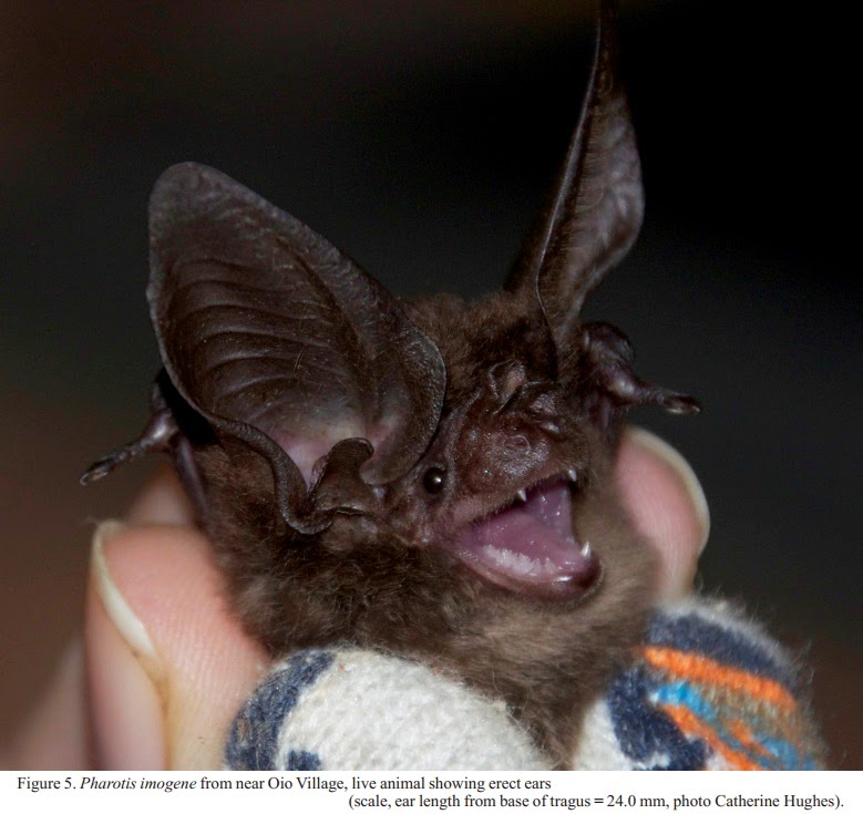 Hughes, Catherine, Julie Broken-Brow, Harry Parnaby, Steve Hamilton, and Luke K.-P. Leung. 2014. Rediscovery of the New Guinea Big-eared Bat Pharotis imogene from Central Province, Papua New Guinea. Records of the Australian Museum. 66(4): 225–232.