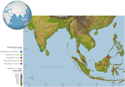 Fig 1. Map showing distribution of species of Pedostibes and Rentapia gen. nov.