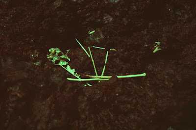 | FIGURE 10. Skeleton of Synemporion keana in situ on the floor near the lower end of Māhiehie Cave.