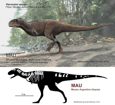 El MAU ya tiene su primer dinosaurio terópodo Ya se encuentra publicado en versión online, en la revista Cretaceous Research, el trabajo sobre este dinosaurio carnívoro, un nuevo abelisaurio, que proviene de La Invernada de rocas de la Formación Bajo de la Carpa. La excelente preservación y la significativa información que aportó el ejemplar resultaron relevantes para avanzar en el conocimiento de este grupo de terópodos, los abelisaurios. Viavenator ("cazador del camino") exxoni gen. et sp. nov. es el primero dado a conocer de una serie de ejemplares que han sido recuperados en la zona de La Invernada gracias al enorme apoyo de la empresa Exxonmobil. Desde la Dirección del MAU se espera a futuro, poder llevar a delante una presentación formal del nuevo dinosaurio.