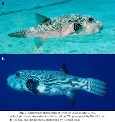 Keiichi Matsuura. 2016. A New Pufferfish, Arothron multilineatus (Actinopterygii: Tetraodontiformes: Tetraodontidae), from the Indo-West Pacific. Ichthyological Research. DOI: 10.1007/s10228-016-0517-8