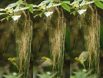 How the Sapayoa ended up so far from other members of its lineage remains a mystery, and little is known about its reproductive biology or social behavior. However, new field work in Panama by Sarah Dzielski and Benjamin Van Doren of Cornell University and their colleagues reveals that Sapayoas consistently build nests that hang over the water along ravine-bottom streams. One of the active nests they observed was attended by a family group comprised of an adult male and female and two immature males, all four of which brought food to the two chicks. The researchers were surprised by the social behavior they observed, which included mounting between individuals of the same sex, possibly to establish dominance and maintain social cohesion. These are the first extended observations of Sapayoa breeding behavior, and they provide hints at how this unusual bird is connected with its roots. Many of the Sapayoa's Old World relatives are cooperative breeders, getting help from family groups, and the pear-shaped hanging nest also is consistent with Old World "suboscines," the group of birds to which Sapayoas belong. Dzielski, Van Doren, and their colleagues Jack Hruska and Justin Hite searched for Sapayoa nests as part of an expedition to Panama's Darién National Park in summer 2014, observing the family group at their focal nest for more than 70 hours over ten days. "Nest searching was always an adventure," says Dzielski. "We found countless abandoned nests, and while checking inside for eggs or evidence that the nest was active, we found all sorts of surprises. In a few instances, a large grasshopper the size of a mouse hopped out from under the flap and scared the daylights out of us!" "The Sapayoa is so different from other passerine birds that it is currently placed in its own family, Sapayoidae, but relatively little is known about its natural history," adds Van Doren. "This gap in scientific knowledge was the reason we traveled to eastern Panama to learn about this enigmatic species. We hoped that more information about the Sapayoa's natural history would cast its surprising evolutionary relationships in a new and clearer light." "The Sapayoa has long been a mystery bird. When my colleagues and I identified it as the only Old World suboscine in the New World in 2003, it only became more mysterious," says Jon Fjeldså of the University of Copenhagen, who led the research team that first identified the Sapayoa's unusual origins. "How did it arrive in South America? Why does it resemble a manakin? And does it still behave like an Old World suboscine? I am excited to learn that it indeed does!"