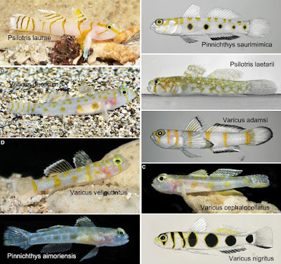 | Psilotris laurae, Pinnichthys saurimimica, Varicus decorum, Psilotris laetarii, Varicus veliguttatus, Varicus adamsi, Varicus cephalocellatus, Pinnichthys aimoriensis & Varicus nigritus