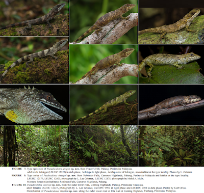 [Targaryen Dragons in the Mist: three new species of Pseudocalotes Fitzinger (Squamata: Agamidae) across the sky island archipelago of Peninsular Malaysia.] Zootaxa. 4136(3); DOI: