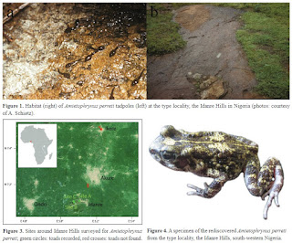 Abiodun B. Onadeko, Mark-Oliver Roedel, H. Christoph Liedtke and Michael Barej. 2014. The Rediscovery of Perret’s Toad, Amietophrynus perreti (Schiøtz, 1963) after more than 40 years, with Comments on the Species’ Phylogenetic Placement and Conservation Status. Zoosystematics and Evolution 90(2): 113-119. DOI: 10.3897/zse.90.8234