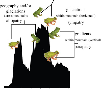 | Figure 1. Alternative processes driving diversification in a mountain setting and expected patterns of sister-lineage distributions (summarized in the electronic supplementary material, table S1). |