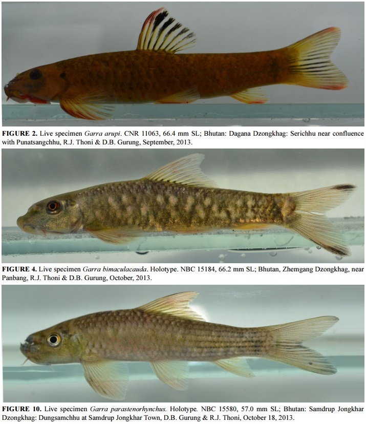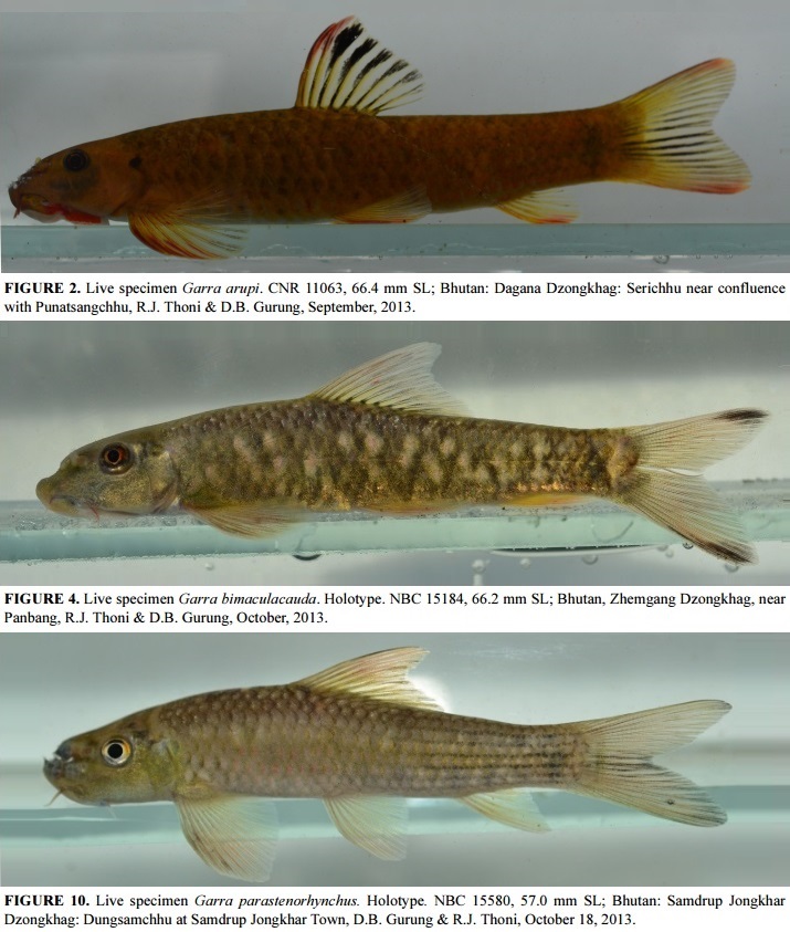 Thoni, R. j., Dhan B. Gurung & R. L. Mayden. 2016. A Review of the Genus Garra Hamilton 1822 of Bhutan, including the Descriptions of Two New Species and Three Additional Records (Cypriniformes: Cyprinidae). Zootaxa. 4169(1): 115–132. DOI: 10.11646/zootaxa.4169.1.5