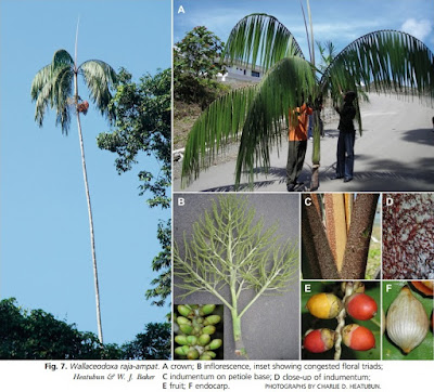 ETYMOLOGY. The generic name commemorates Alfred Russel Wallace, the great English naturalist and codiscoverer of the theory of evolution by natural selection, who visited Waigeo in the Raja Ampat Islands in 1860 during his celebrated Malay Archipelago travels (Wallace 1869; van Wyhe 2013). This eponymy marks the centenary of his death on 7 November 1913. The generic name is derived by suffixing Wallace’s surname with the Greek word (-doxa) to mean “to the glory of Wallace” Charlie D. Heatubun, Scott Zona and William J. Baker. 2014. Three New Genera of Arecoid Palm (Arecaceae) from eastern Malesia. Kew Bulletin. 69(3):9525. DOI: 10.1007/S12225-014-9525-X | 5:37p |