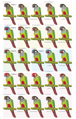 Material and Methods: We made a morphological analysis of 745 preserved specimens of all the taxa in different museums. Nucleotide sequences of the mitochondrial cytochrome gene were generated and used to reconstruct a molecular phylogeny of Pyrrhura.
