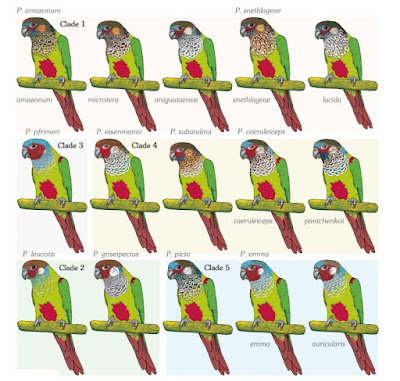 Thomas Arndt and Michael Wink. 2017. Molecular Systematics, Taxonomy and Distribution of the Pyrrhura picta–leucotis Complex. The Open Ornithology Journal. 10; 53-91. DOI: 10.2174/1874453201710010053