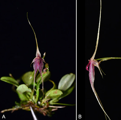 | Figure 2. Platystele baqueroi. A, frontal view. B, lateral view.