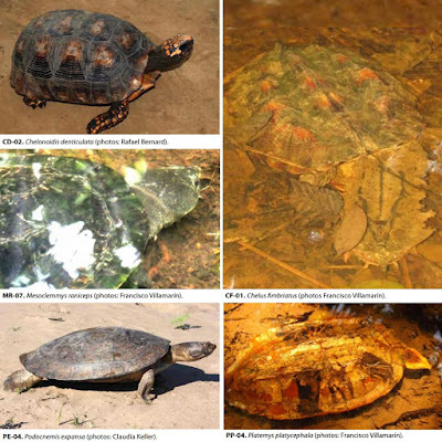 | CD-02. Chelonoidis denticulata. MR-07. Mesoclemmys raniceps. CF-01. Chelus fimbriatus. PE-04. Podocnemis expansa. PP-04. Platemys platycephala.