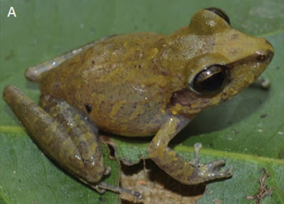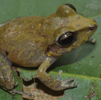 Diagnosis: Pristimantis latro sp. n. is distinguished from other species of the group by the following combination of characters (summarized in Table 4): (1) dorsal skin weakly shagreened or smooth, dorsal tubercles present, dorsolateral folds absent, smooth skin on belly; (2) whitish or yellowish ventral coloration with black spots; (3) one subarticular tubercle on fingers I and II and two on Fingers III and IV; (4) supernumerary tubercles present at the base of fingers I, II, and III, and almost the same size of subarticular tubercles; (5) lateral fringes along fingers; (6) supernumerary tubercle present at the base of Toe IV; (7) basal webbing between toes and weak lateral fringes on toes; (8) twenty-one molecular autapomorphies for the gene fragment 16S mtDNA (Table 5); (9) call consisting of seven notes.