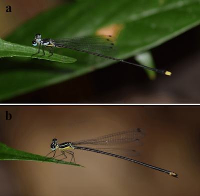 | FIGURE 4. Coeliccia duytan sp. nov. in nature (4a) male; (4b) female. |